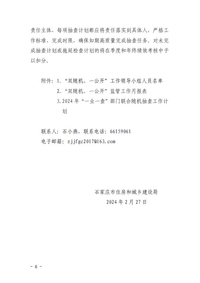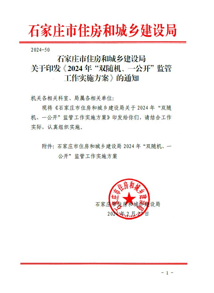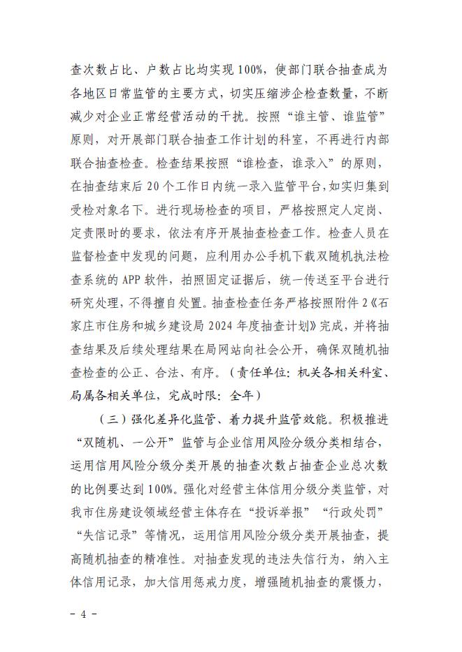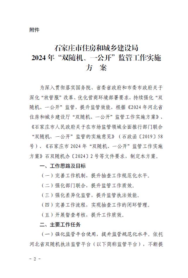 关于印发2024年石家庄市“双随机、一公开”监管工作实施方案的通知