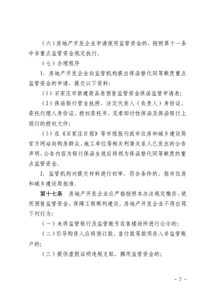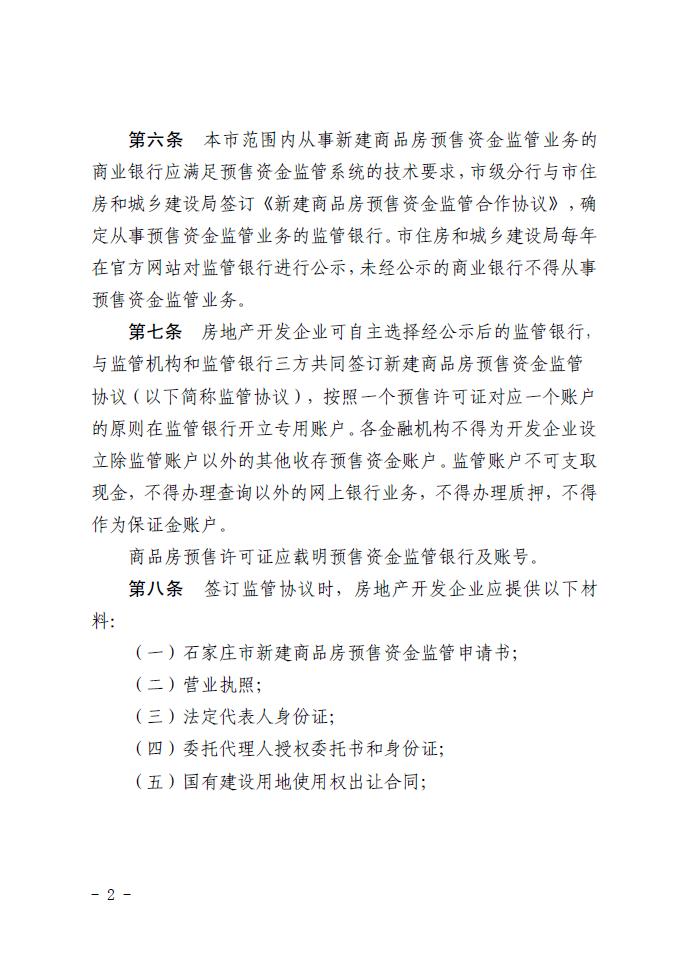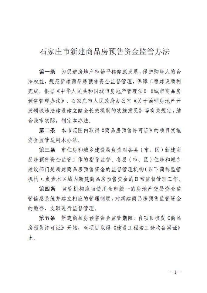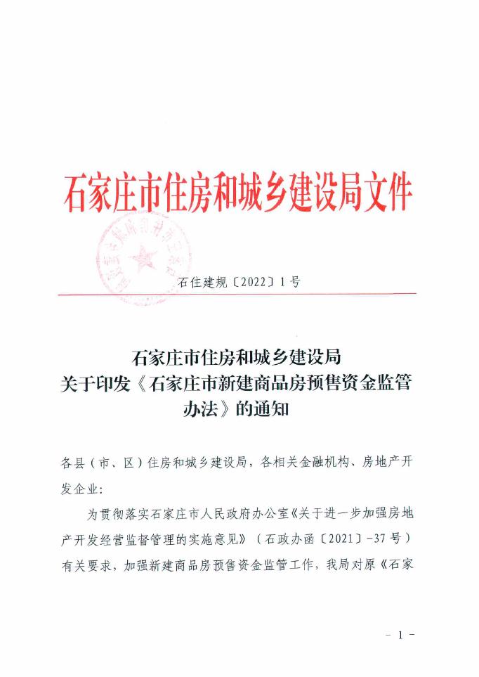 关于印发《石家庄市新建商品房预售资金监管办法》的通知