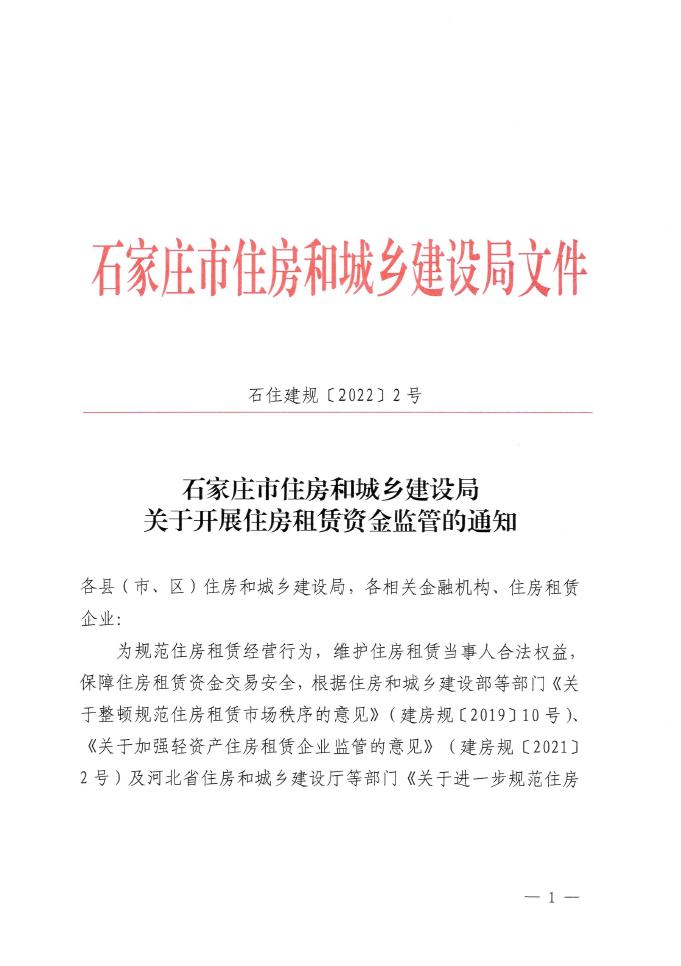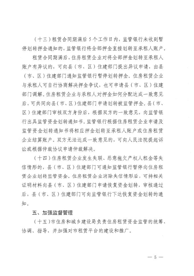关于开展住房租赁资金监管的通知