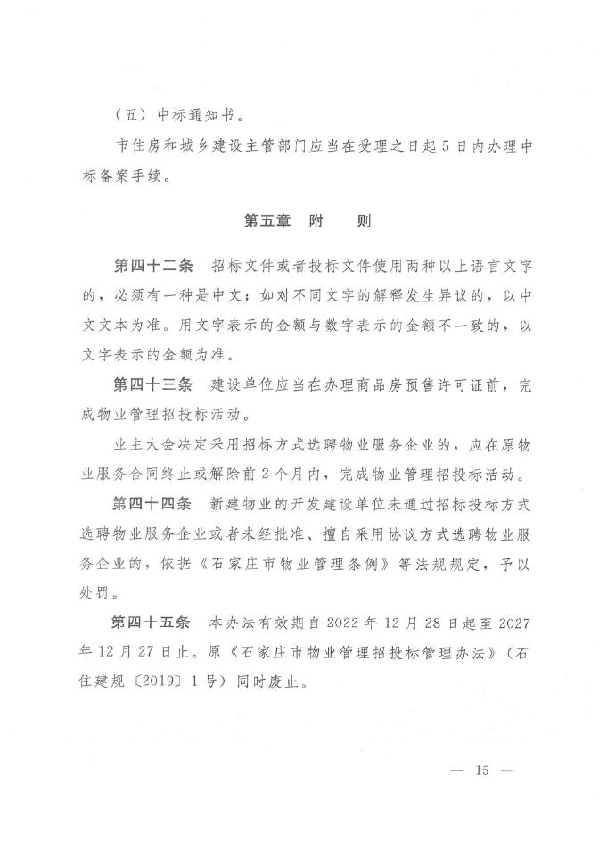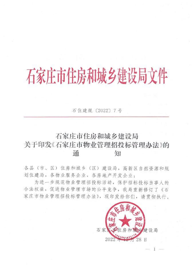 关于印发《石家庄市物业管理招投标管理办法》的通知