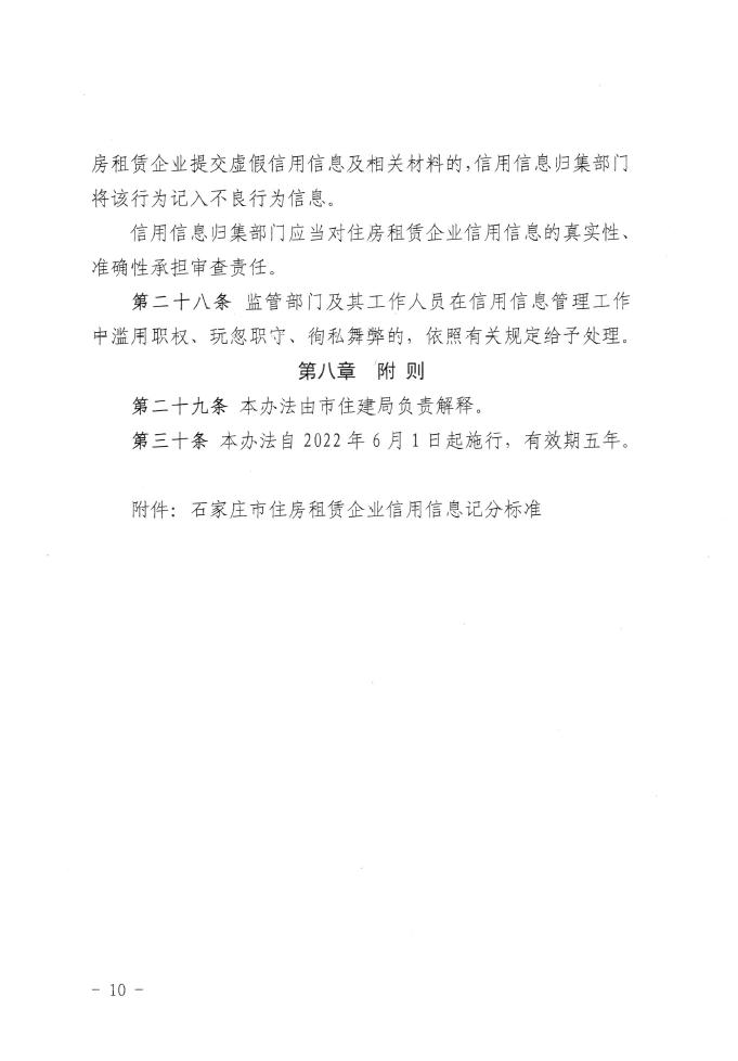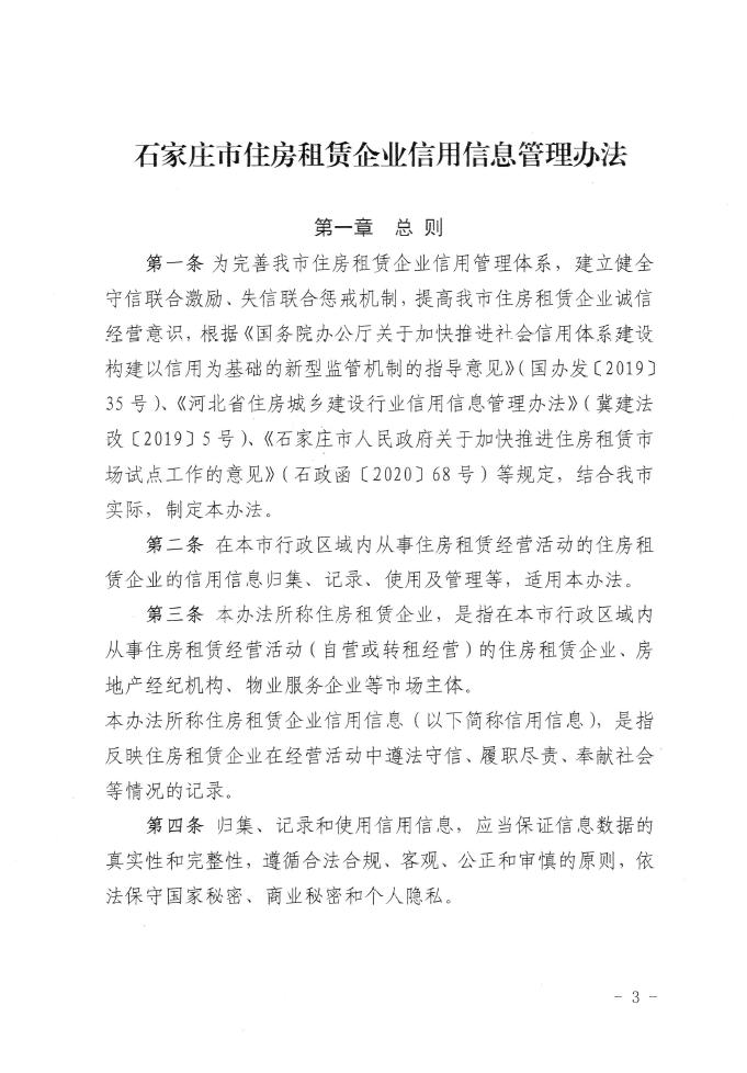 关于印发《石家庄市住房租赁企业信用信息管理办法》的通知