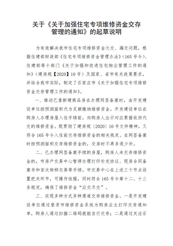 关于《关于加强住宅专项维修资金交存管理工作的通知》的起草说明